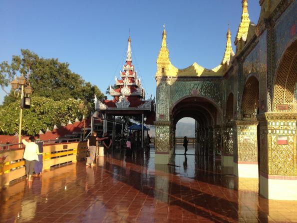 Due to our detour to Yangon, we had only a day and a half in Mandalay. Our first stop was a golden Buddha statue. For decades the faithful have come and attached gold foil to the statue. Photos indicated that over the years the statue has more than doubled in size.