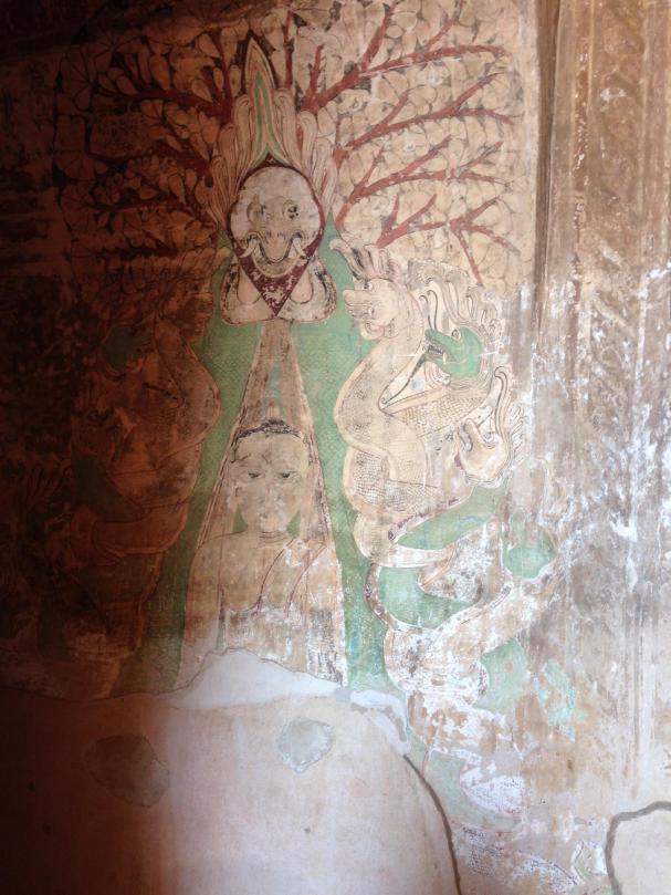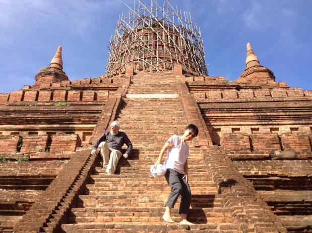 After waiting a half hour or more, with our tour guide fretting about how he could ever get us to Bagan, some heavy construction equipment was brought from the work on the bridge and pushed the bus out of the way. We made it to Bagan.