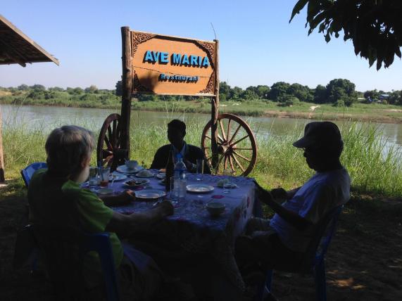 We stayed at a nice hotel on the Irrawaddy river which featured a rooftop restaurant offering a lovely sunset view.