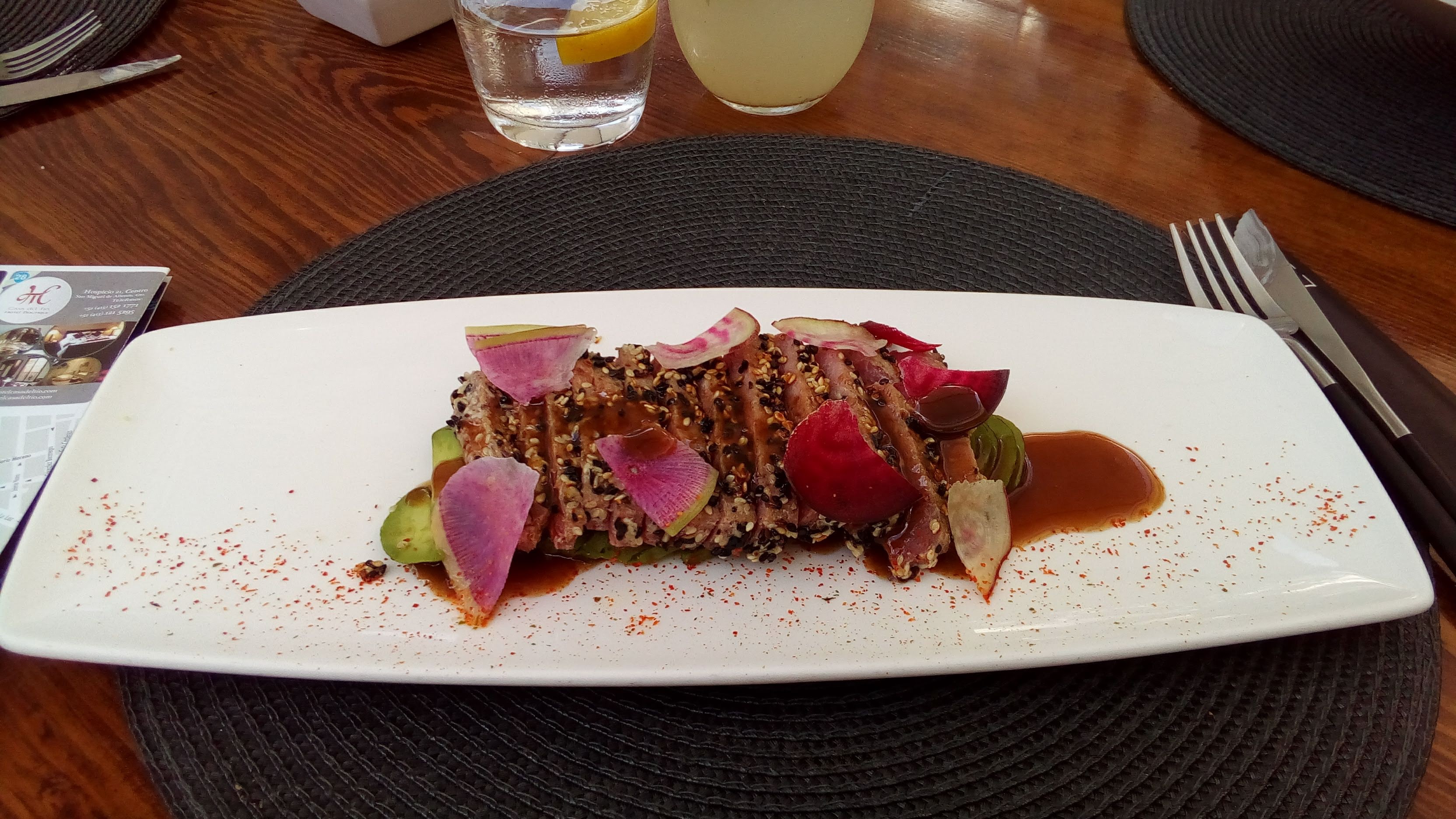 After visiting the church, we had lunch at Atrio. It is a few steps from the church, and offers a nice view of the church from the restaurant. Very artsy in decoration and food presentation. Food was excellent, too. 5 of us shared a salad, each had a main course, then we shared 2 desserts. About $20 per person with margaritas and bottled water.