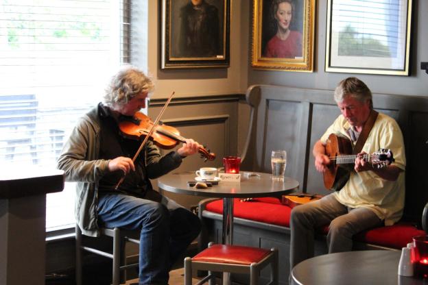 After lunch we continued north to our AirBnB which was in the middle of nowhere, just fields of grazing sheep. Our host told us that the restaurant in the Cliffs of Moher hotel had music every night, so we went there for dinner and finally found some traditional music.