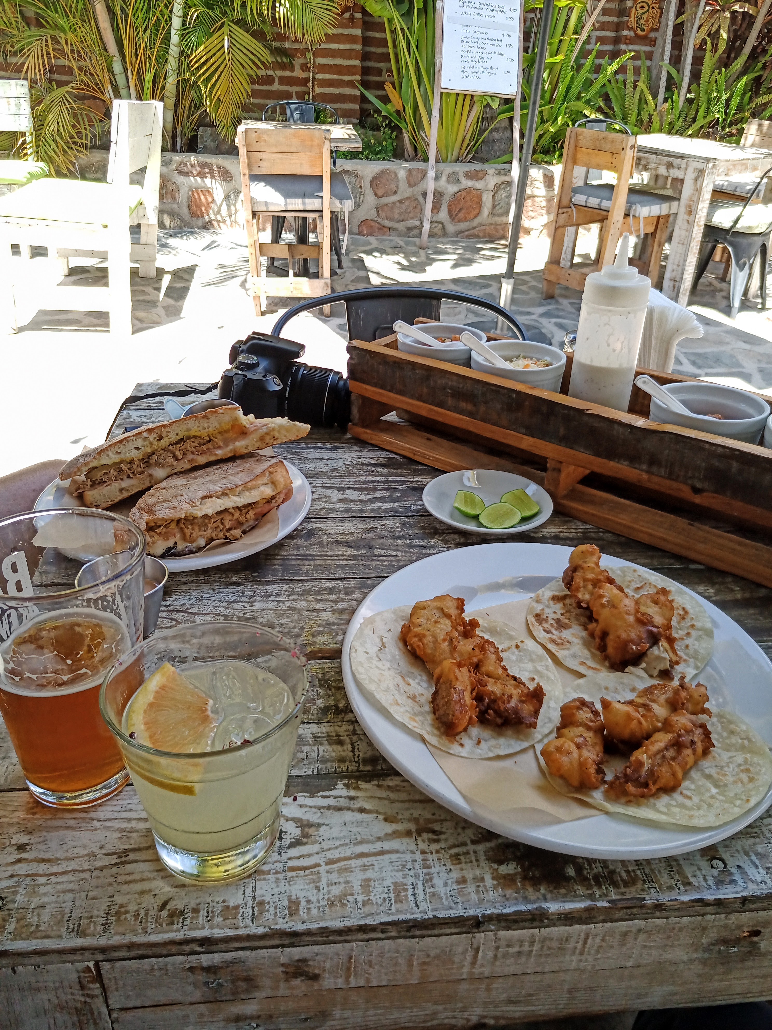 The restaurant that I really wanted to try was Hierbabuena which is off the highway before reaching Todos Santos. A friend of mine who goes to Todos Santos as often as she can manage swears by this restaurant, but we were too hungry to wait till 1 PM opening time.